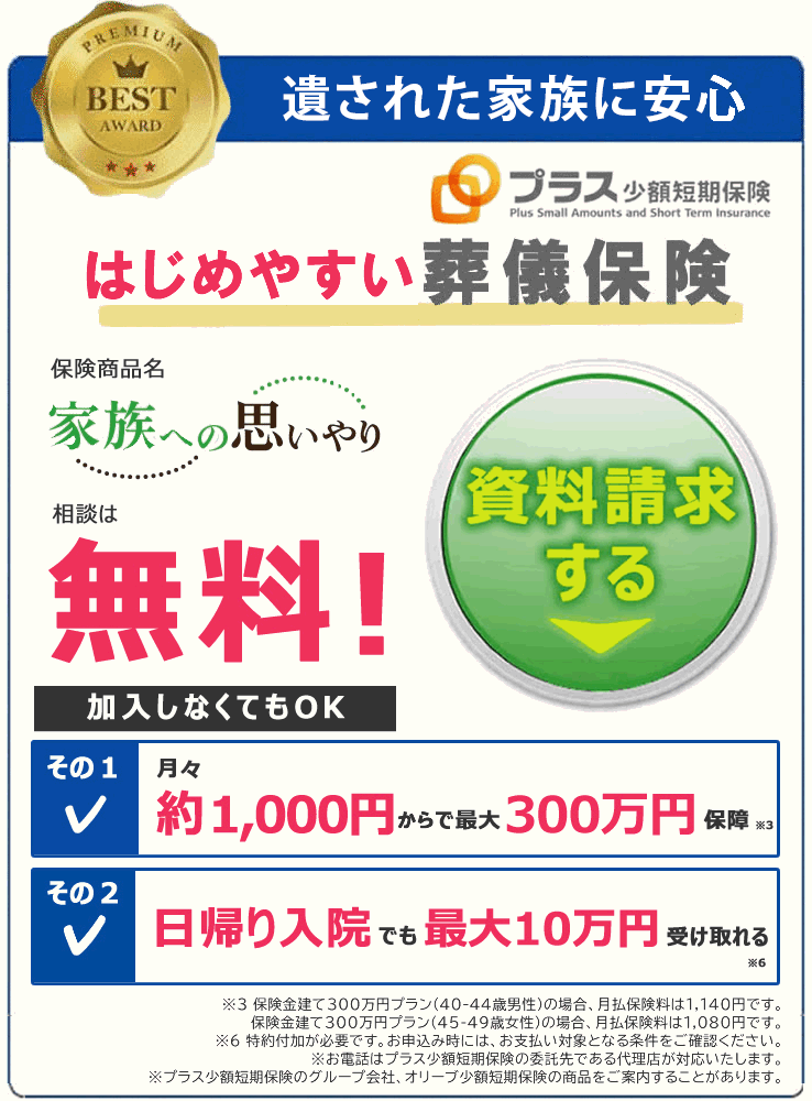 プラス少額短期保険の保険商品「家族への思いやり」です。